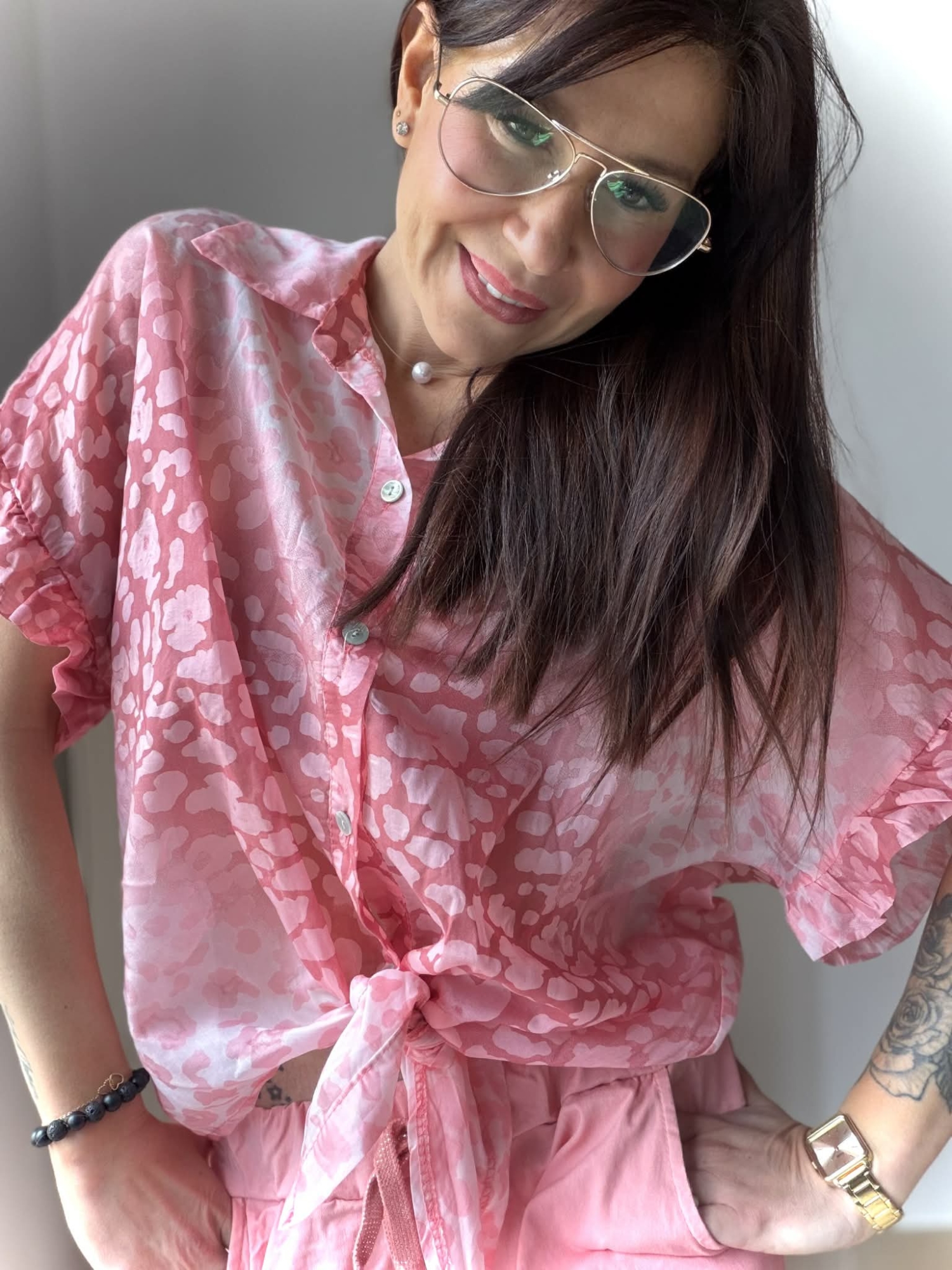 Chemisier fluide et léger au look féminin et pétillant, parfait pour la belle saison. Il séduit par son imprimé rose sur rose plein de douceur, son col chemise classique et sa fermeture boutonnée sur l’avant. Ses manches courtes volantées apportent une touche romantique, tandis que sa coupe ample permet de le porter aussi bien noué à la taille que plus simplement rentré dans un pantalon. Une pièce fraîche et facile à associer pour illuminer une tenue.