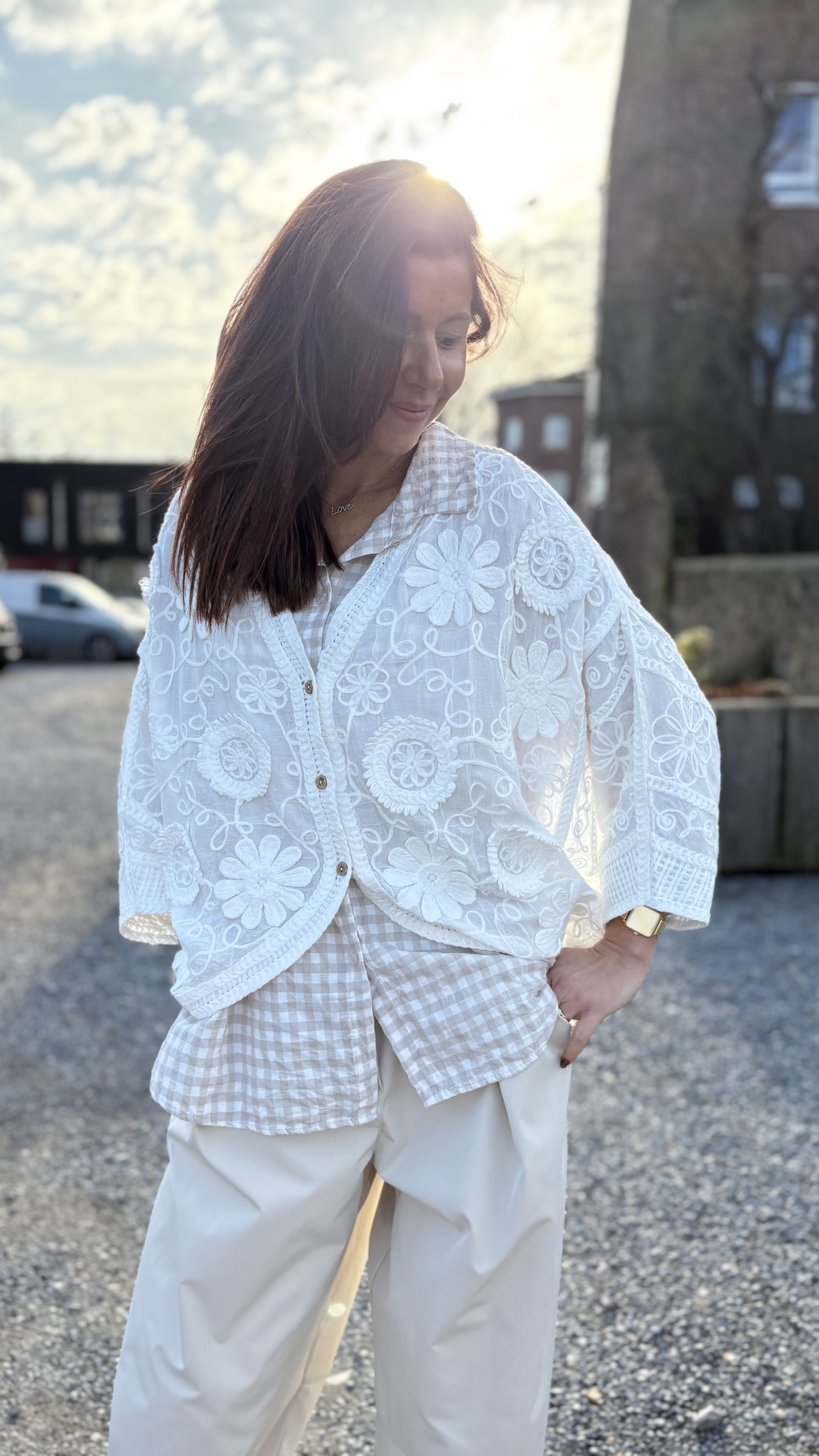 Blouse légère et raffinée, parfaite pour une allure douce et féminine. Son tissu délicatement travaillé laisse apparaître de superbes broderies florales en relief qui lui donnent tout son charme.