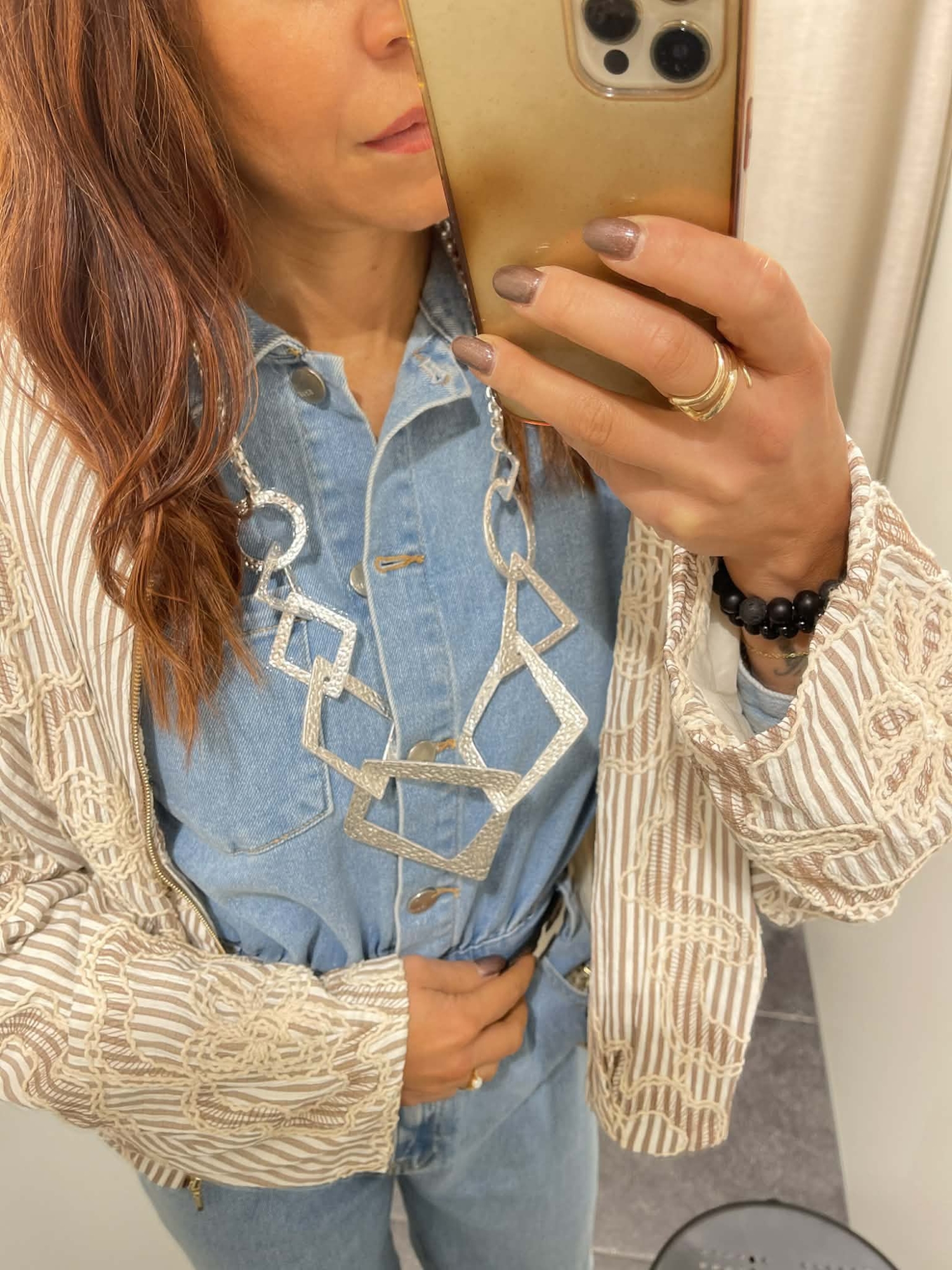 À la fois graphique, moderne et élégant, ce collier transforme instantanément un look simple en une tenue stylée et affirmée.